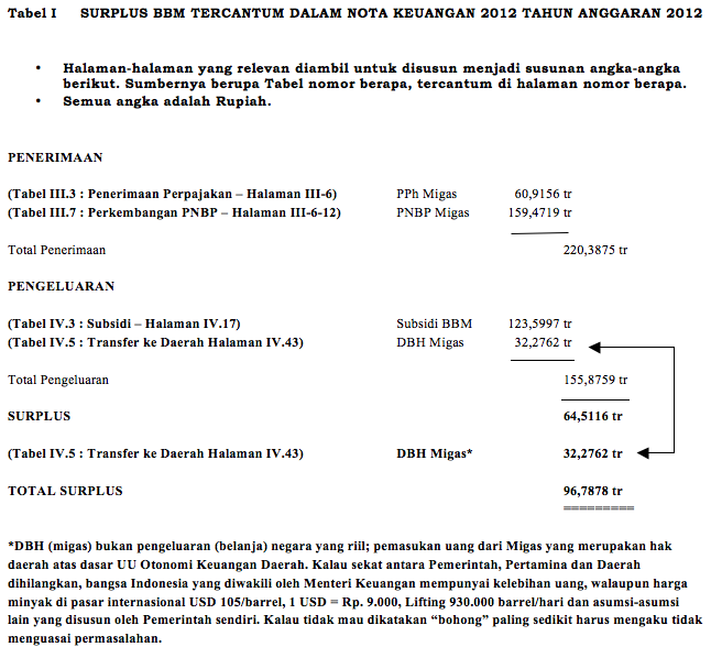 SURPLUS BBM TERCANTUM DALAM NOTA KEUANGAN 2012 TAHUN ANGGARAN 2012